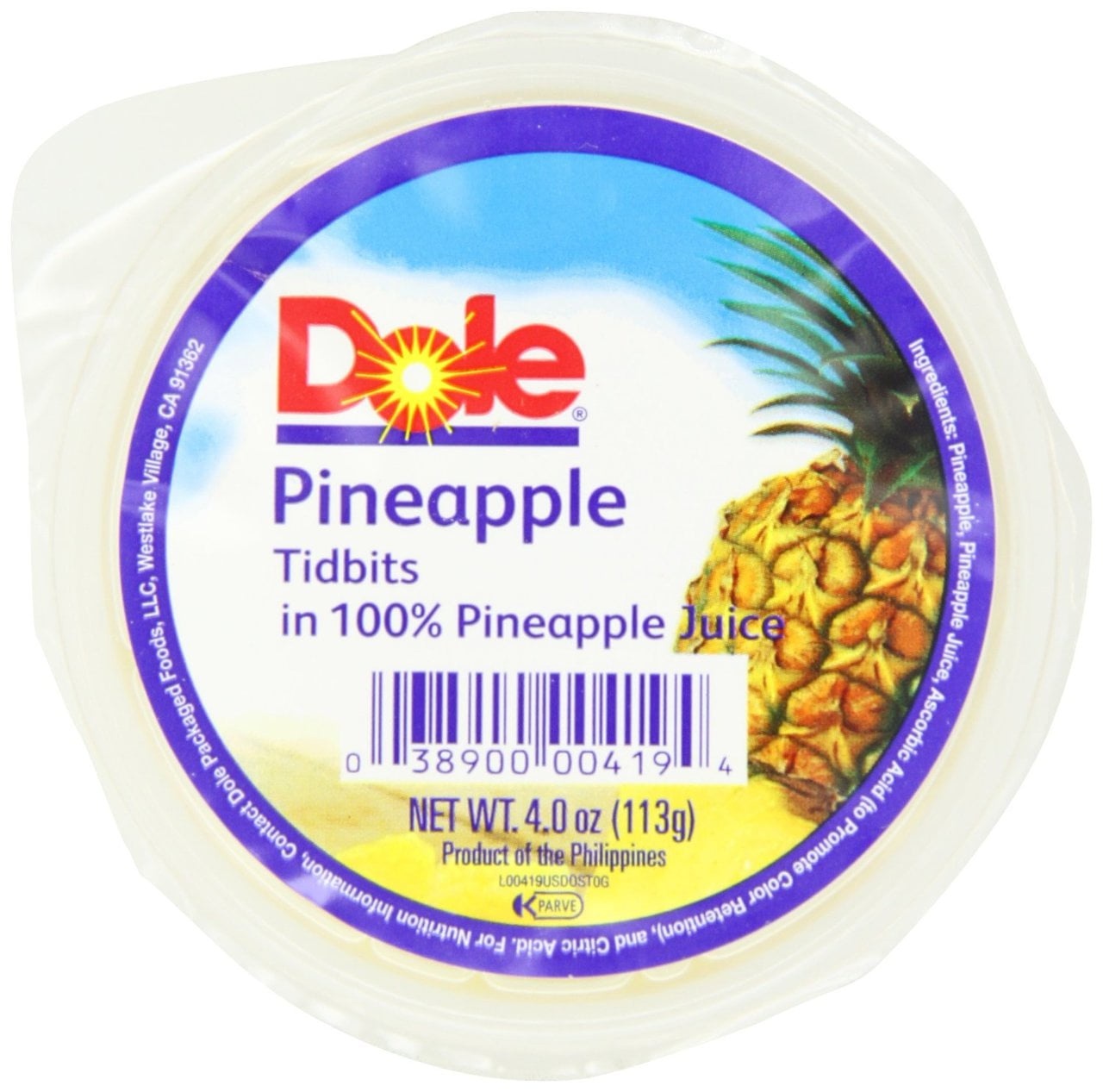 Enjoy a splash of island flavor with this revitalizing combination of pineapple and mandarin orange in slightly sweetened coconut water. Dole pineapple tidbits with no added sugar, 4 oz fruit bowls, 4 cups bite sized pineapple chunks packed in water with the natural sweetness of monk fruit extracts rich source of vitamin c and gluten free Serving size 1 cup (113g) amount per serving 1 cup. Dole fruit bowls, pineapple & mandarin orange in slightly sweetened coconut water, 4 ounce cups (pack of 6) 4.5 out of 5 stars 417 $16.75 $ 16. 1 head iceberg lettuce, stems cut and leaves separated;